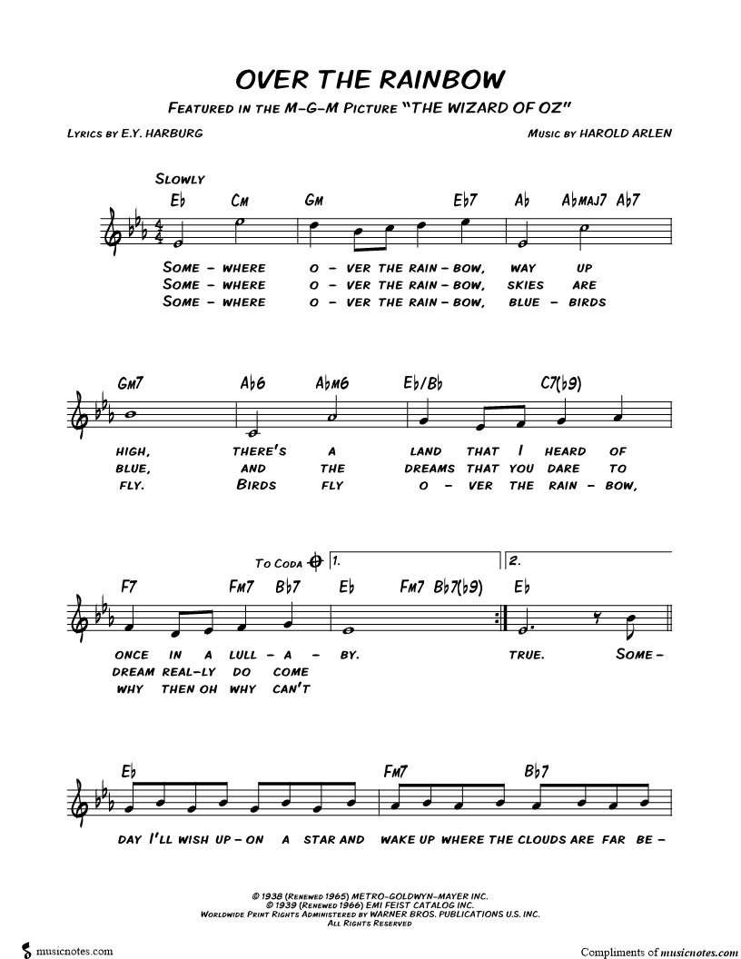 Somewhere over the rainbow, way up high, there's a land that I heard of once in a lullaby. |