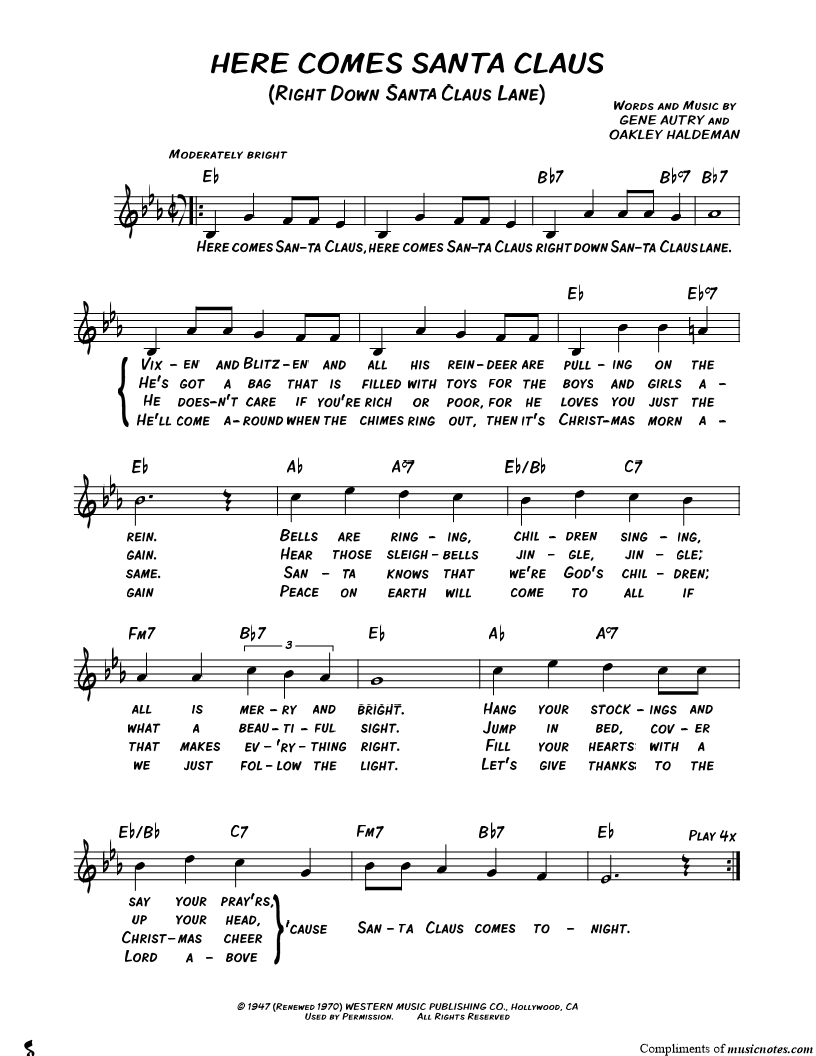 Here comes Santa Claus, here comes Santa Claus right down Santa Claus lane. |