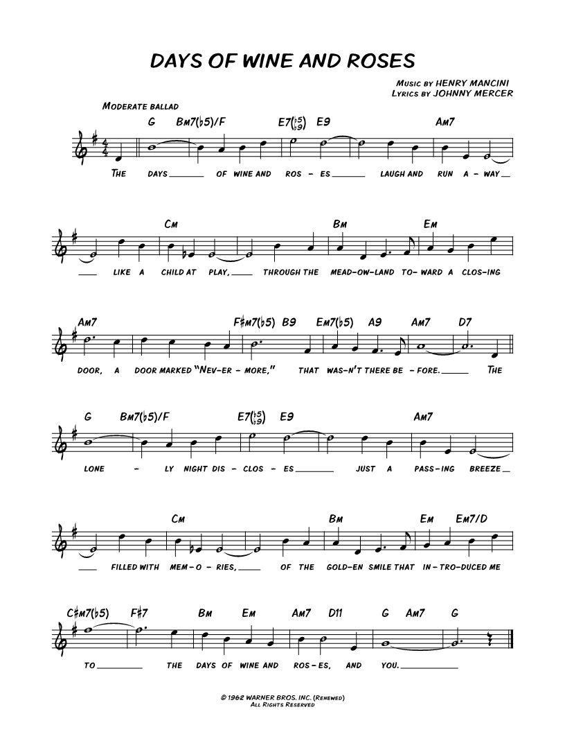 The days of wine and roses laugh and run away like a child at play, through the meadowland toward a closing door, a door marked ``Nevermore,'' that wasn't there before. |