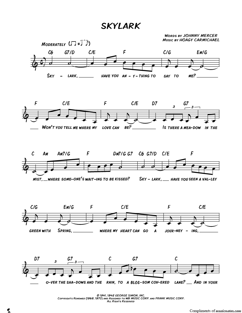 Leadsheets typically only contain the lyrics, chord symbols and melody line of a song and are rarely more than one page in length. Musicians will often use these skeletons to improvise their own arrangements. Leadsheets often do not contain complete lyrics to the song.