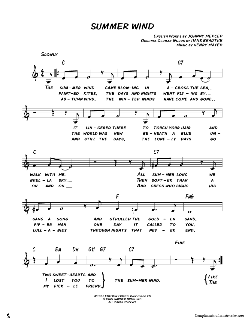 The summer wind came blowing in across the sea, it lingered there to touch your hair and walk with me. |