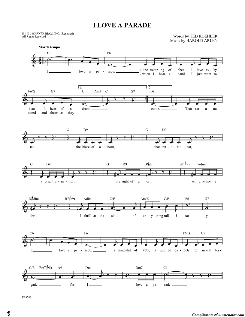 I love a parade, with the tramping of feet, I love ev'ry beat I hear of a drum. |