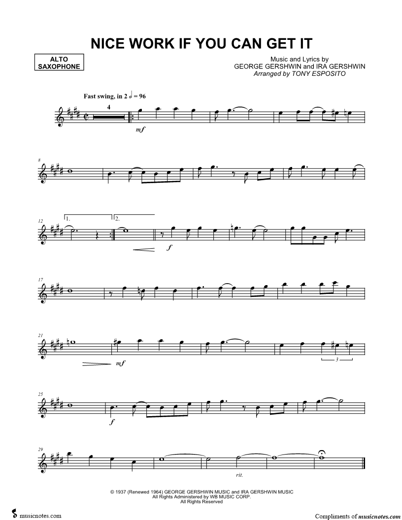 Nice Work If You Can Get It - Alto Saxophone |