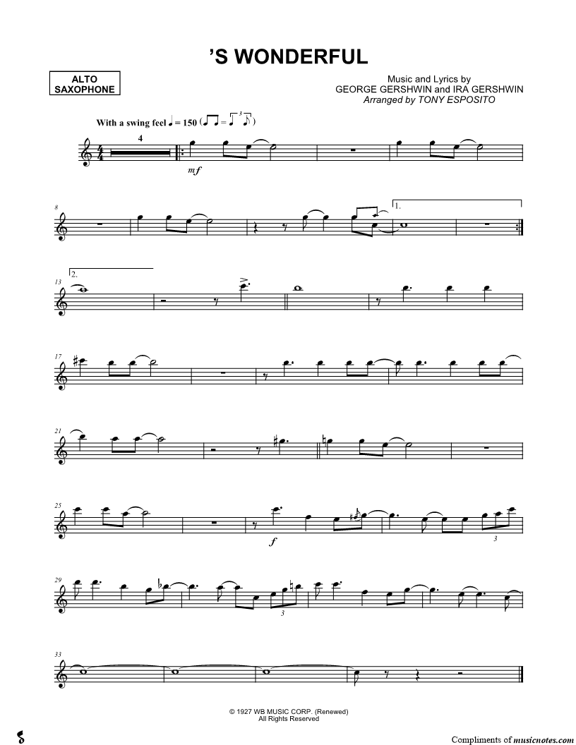 'S Wonderful - Alto Saxophone |