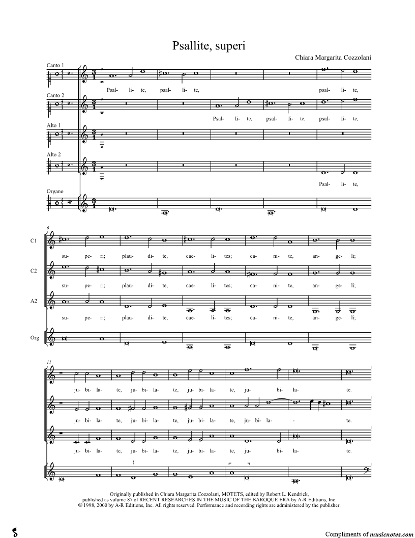 Canto 2, range: B3-F5 Organo, range: D2-A4 Alto Voice 1, range: F3-B4 Alto Voice 2, range: F3-A4 Canto 1, range: C4-F5 | |