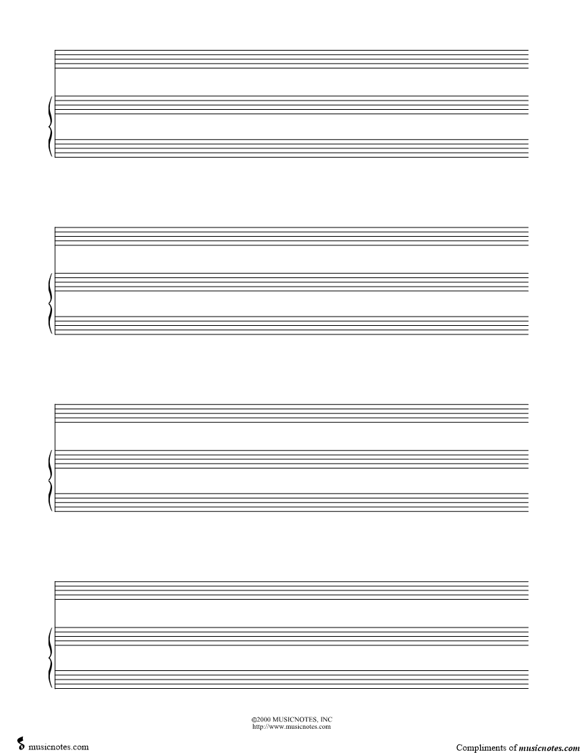 Manuscript Paper for Piano + Solo (Free Blank Sheet Music) |