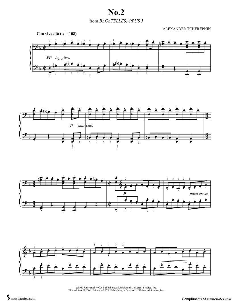 Alexander Tcherepnin Bagatelles, Opus 5 Ten Pieces for Piano |