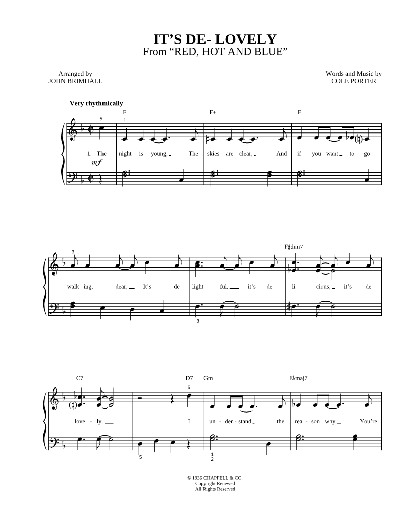 The night is young, The skies are clear, And if you want to go walking, dear, It's delightful, it's delicious, it's delovely. |