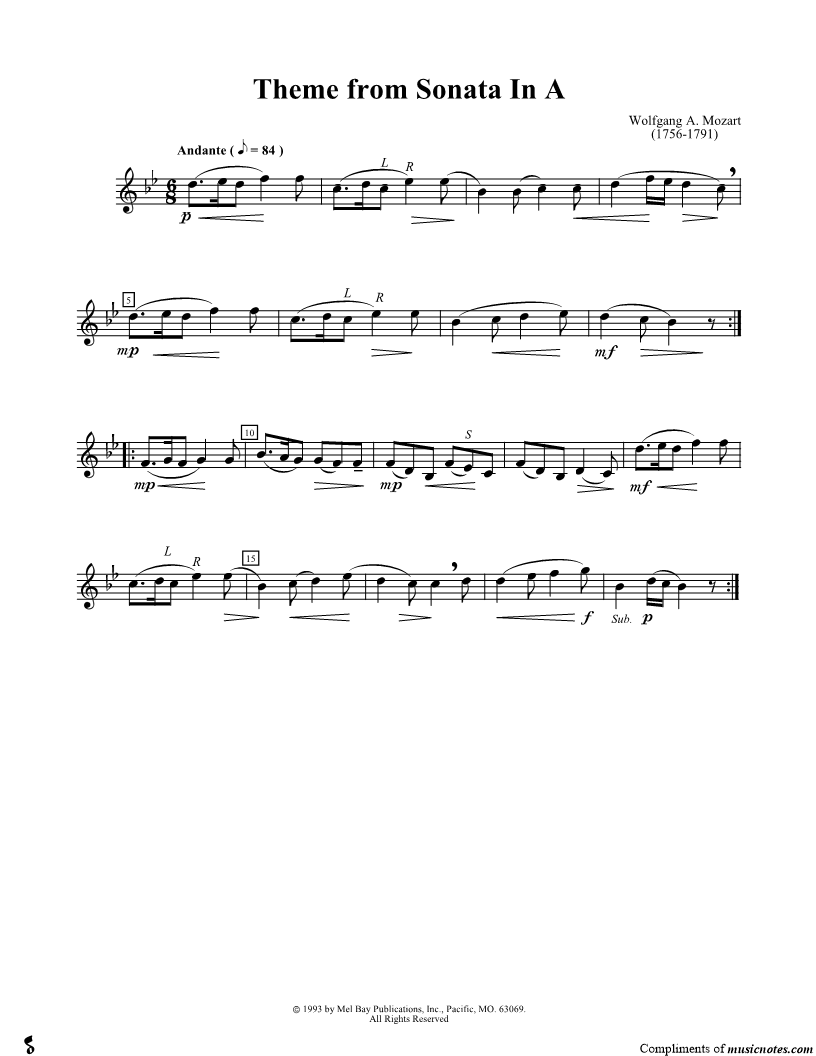 Theme from Sonata in A, K. 331 - Clarinet Part |