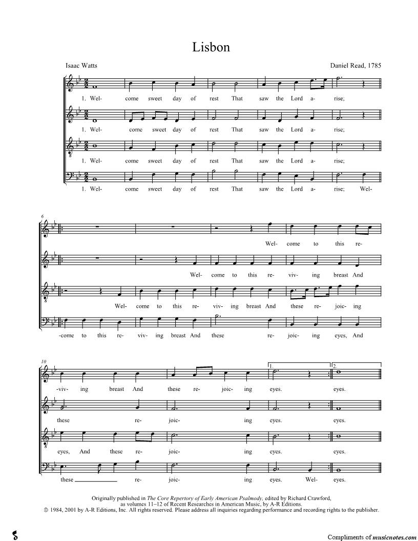 Welcome sweet day of rest That saw the Lord arise; Welcome to this reviving breast And these rejoicing eyes. |