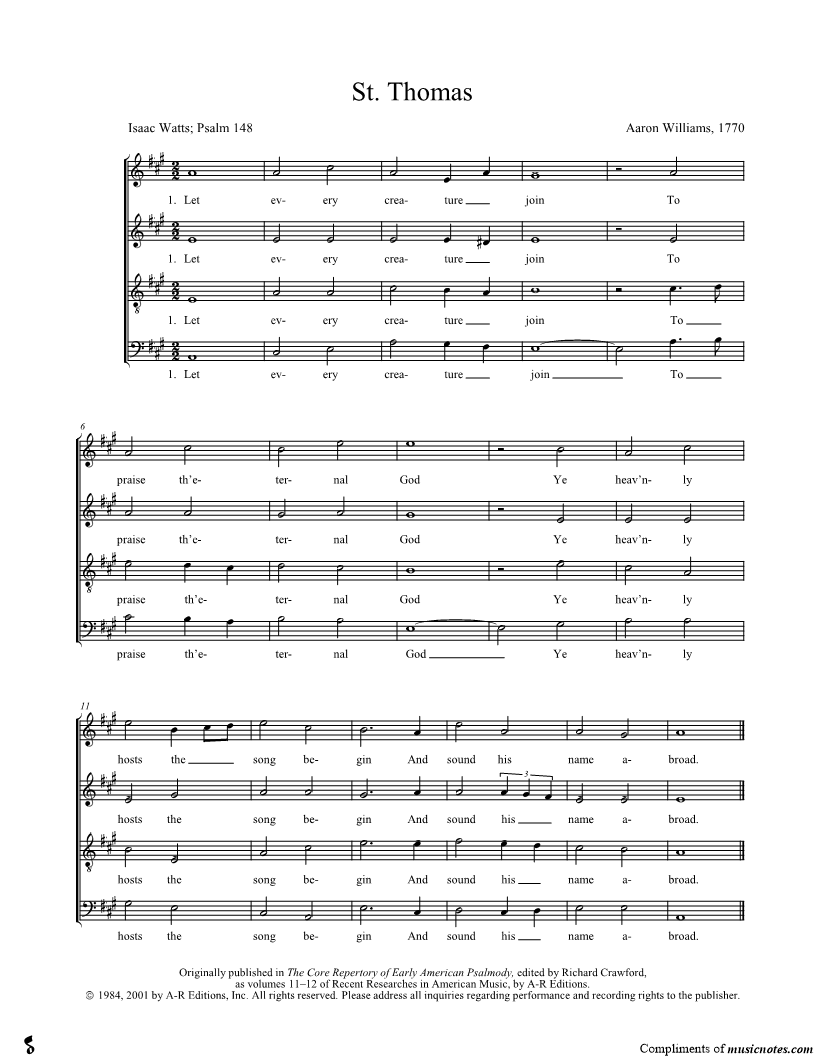 Let every creature join To praise th'eternal God: Ye heav'nly hosts the song begin And sound his name abroad. |