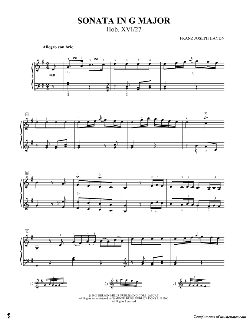 Sonata In G Major Hob. XVI/27 |