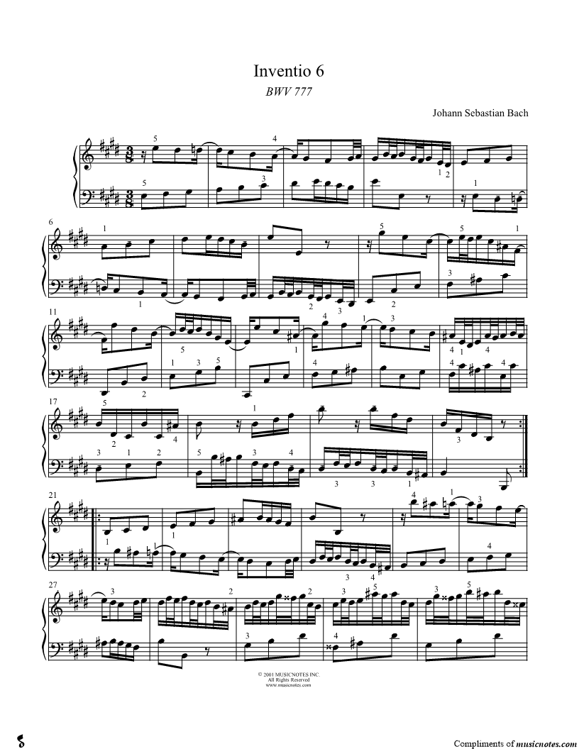 Two Part Invention No. 6, BWV 777 |