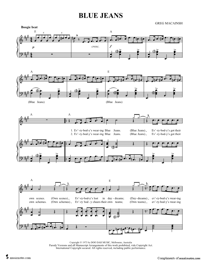 Voice, range: E4-G#5 Piano, range: E2-A5 Guitar | |