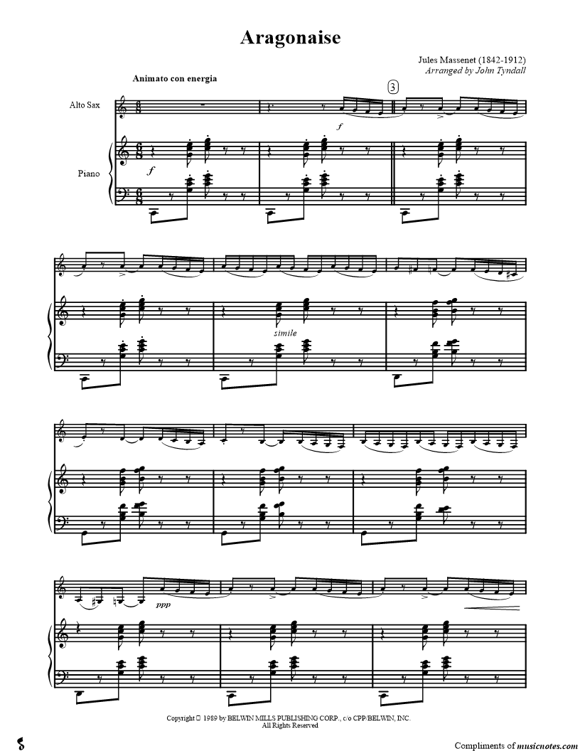Collection: Aragonaise For Alto Saxophone' Alto Saxophone and Piano