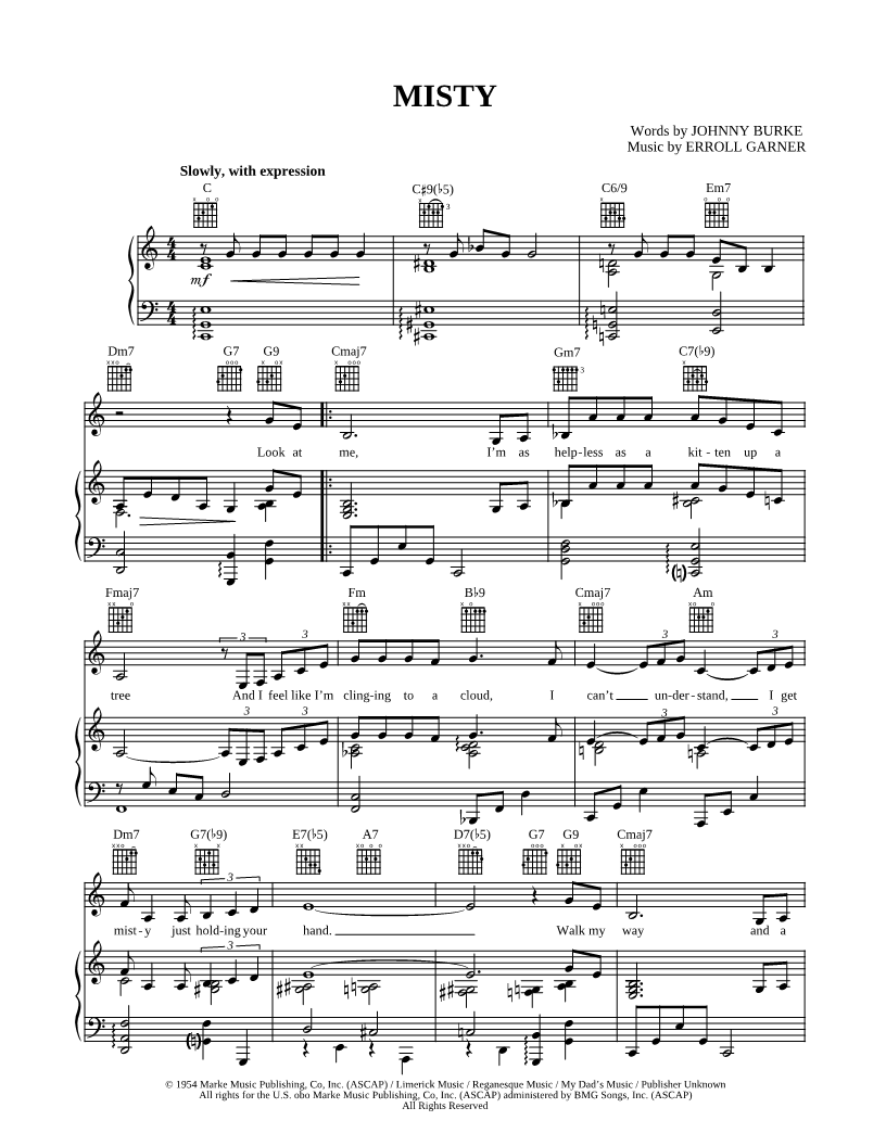 Look at me, I'm as helpless as a kitten up a tree And I feel like I'm clinging to a cloud, I can't understand, I get misty just holding your hand. |