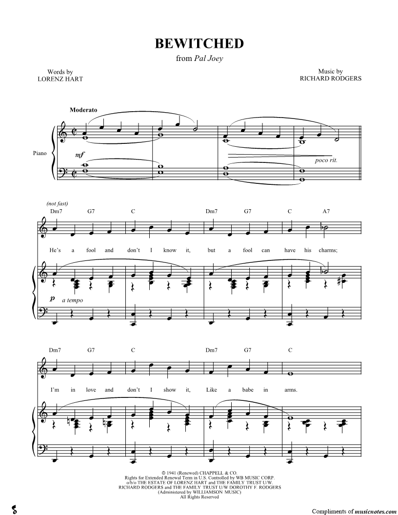 He's a fool and don't I know it, but a fool can have his charms; I'm in love and don't I show it, Like a babe in arms. |