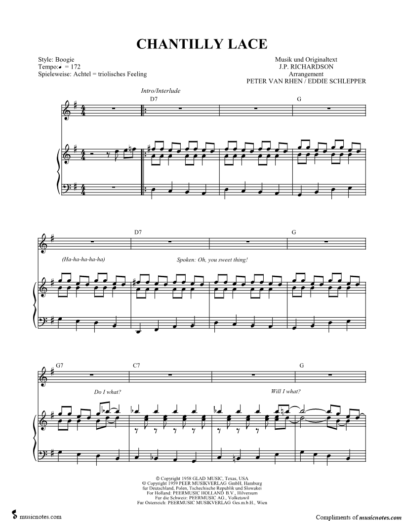 Chantilly Lace and a pretty face and a ponytail just a-hangin' down |