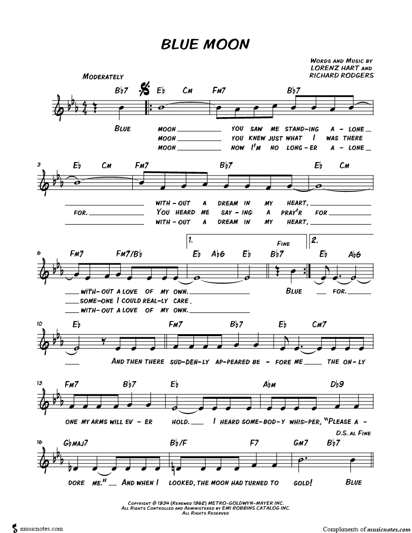 Blue moon you saw me standing alone without a dream in my heart, without a love of my own. |