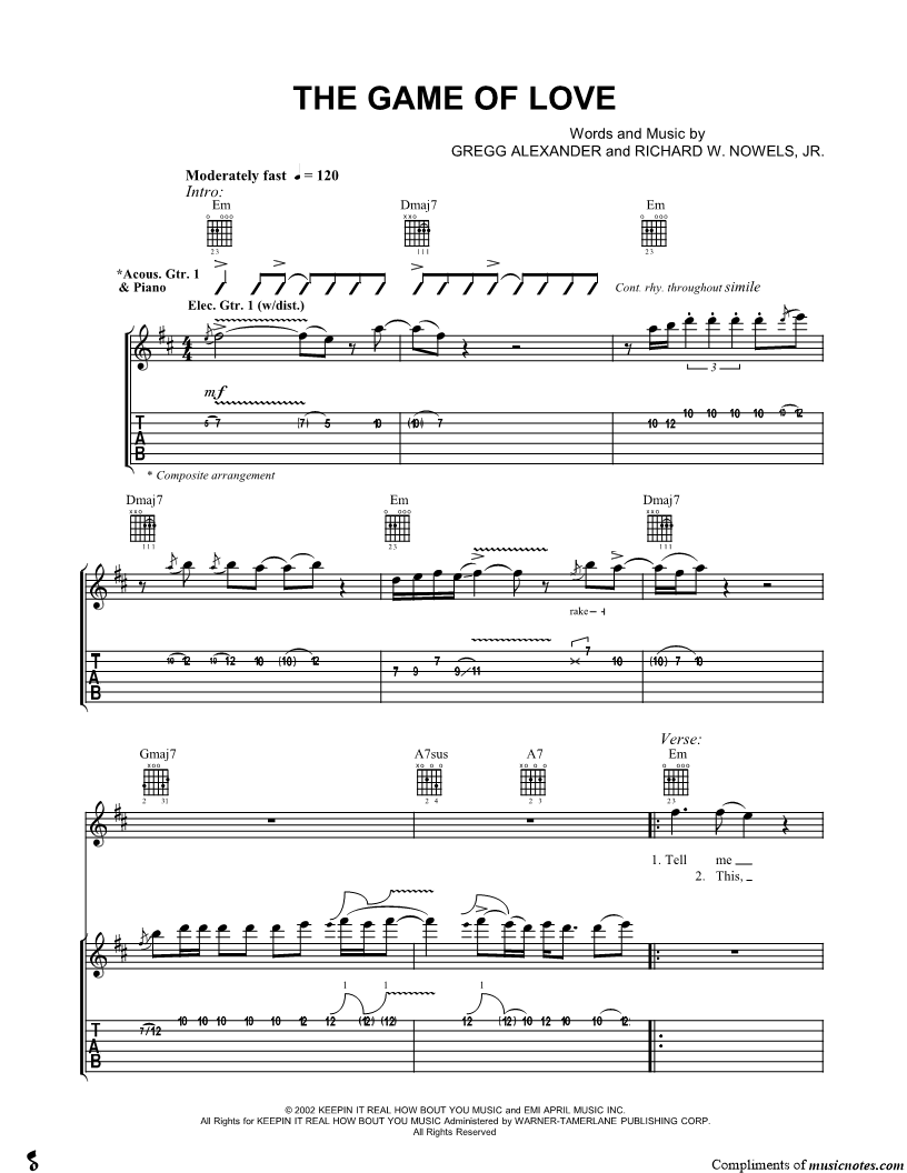Guitar Tab Piano/Vocal/Guitar Guitar/Vocal |