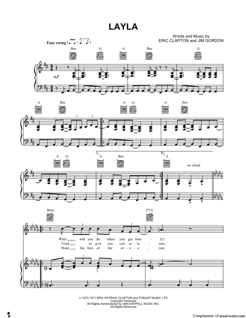 "This is a piano arrangement of Claptons MTV Unplugged acoustic version of Layla. For a ..." Read reviews