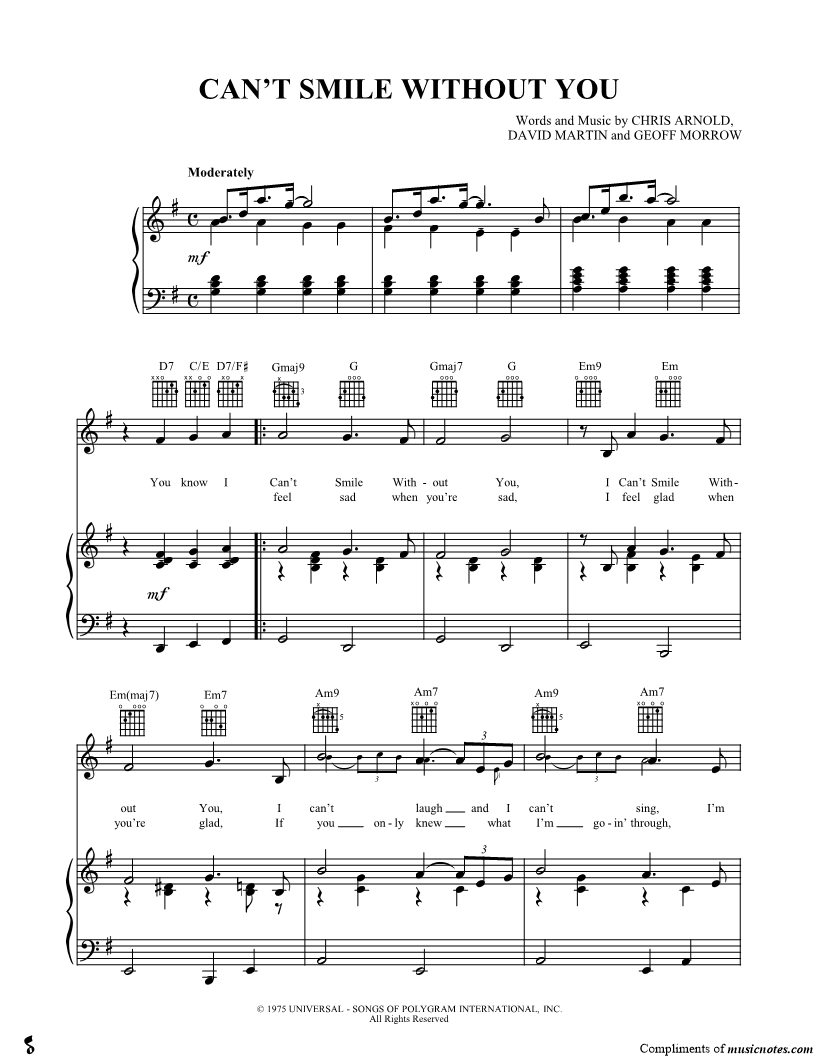 You know I Can't Smile Without You, |