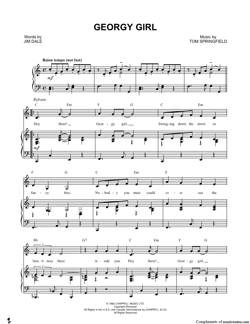 Hey there! Georgy Girl, Swinging down the street so fancy free, |