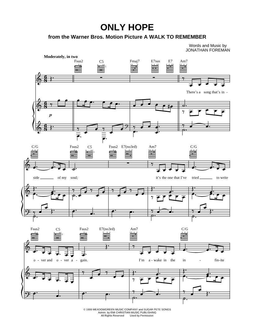 "This arrangement of Only Hope is beautiful and the same one used in the movie "A Walk to R..." Read reviews
