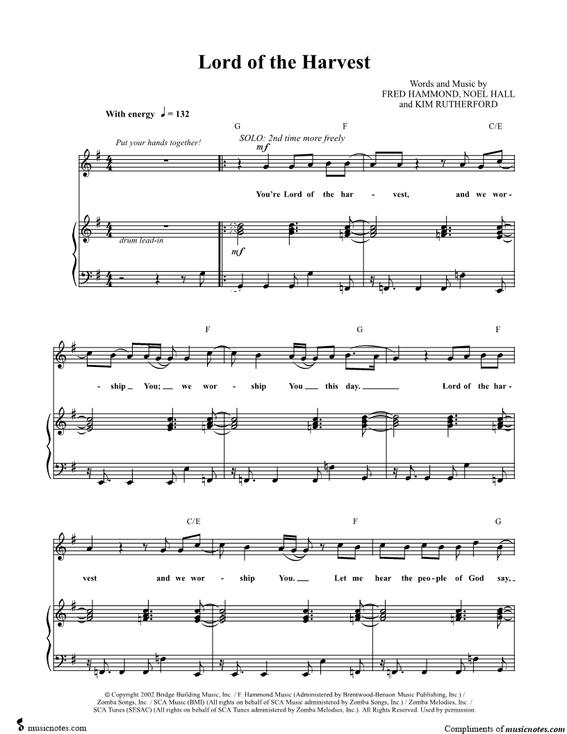 You're Lord of the harvest, and we worship You; we worship You this day. |