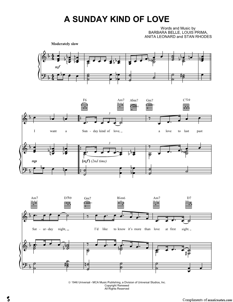 I want a Sunday kind of love, a love to last past Saturday night, |