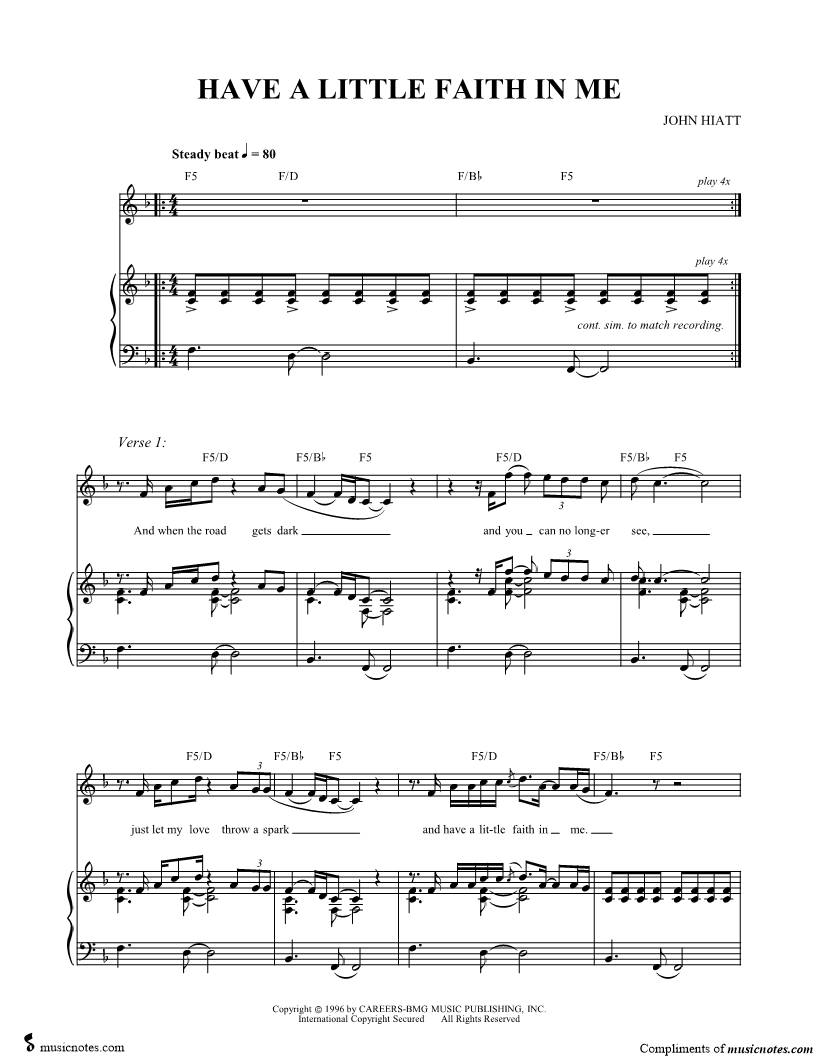 And when the road gets dark and you can no longer see, just let my love throw a spark and have a little faith in me. |