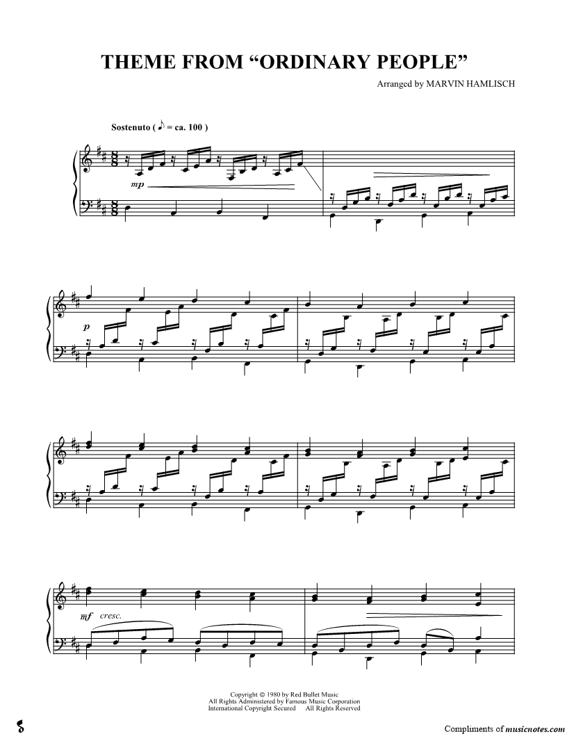 Movie Favorites for Piano Solo Theme From Ordinary People - Intermediate Piano Ultimate Movie Music - 2nd Edition |
