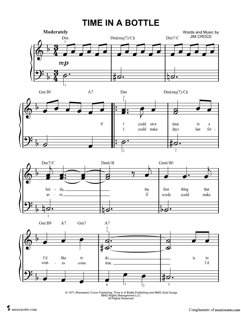 If I could save time in a bottle, the first thing that I'd like to do is to save ev'ry day 'til eternity passes away just to spend them with you. |