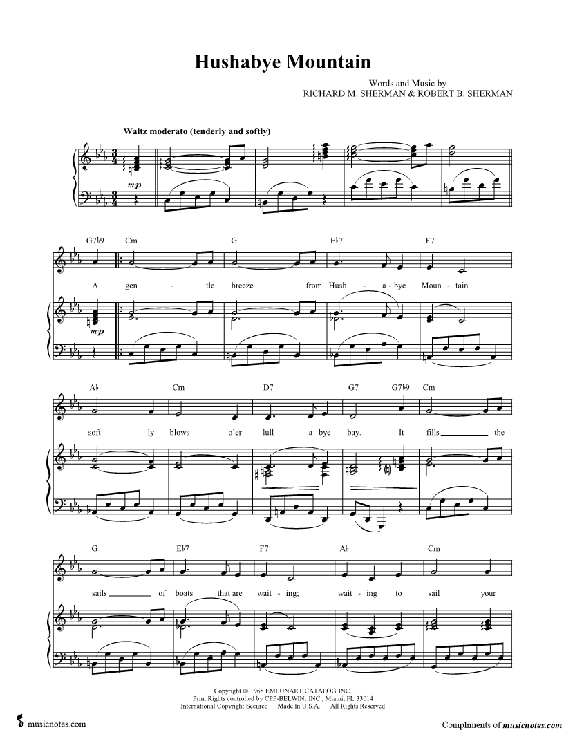 A gentle breeze from Hushabye Mountain softly blows o'er lullabye bay. |