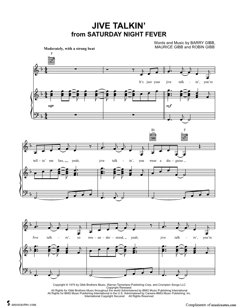 It's just your jive talkin', you're tellin' me lies, yeah; jive talkin', you wear a disguise. |