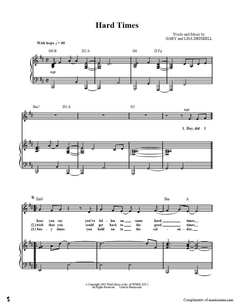 Hey, did I hear you say you've fallen on some hard times, that your dreams are crushed and scattered to the wind, and if there's a someday when the pain will be forgotten, right now it's too much for your heart to comp |
