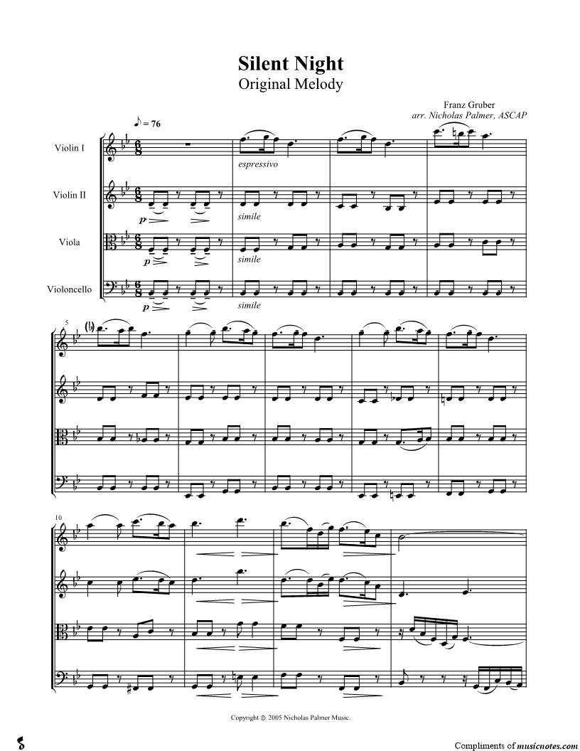 Violin 1, range: Bb3-D6 Violin 2, range: A3-Bb5 Viola, range: D3-Bb4 Cello, range: D2-F4 | |