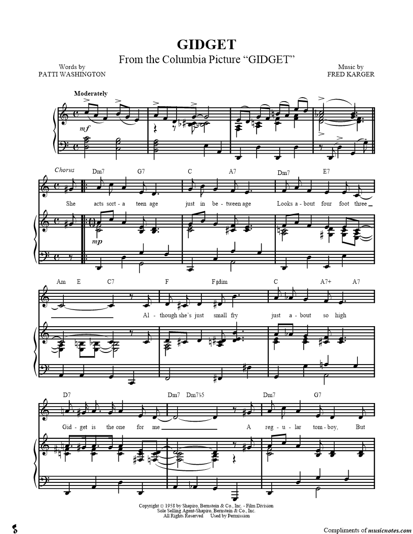 She acts sorta teen age just in between age Looks about four foot three Although she's just small fry just about so high Gidget isthe one for me A regular tomboy, |