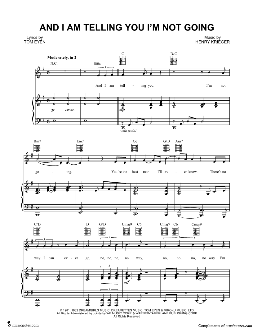 And I Am Telling You I'm Not Going Dream Girls/Vocal Selections |
