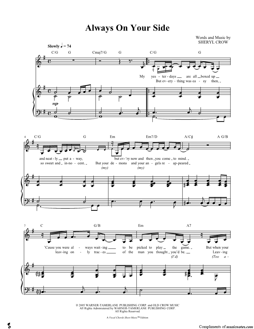 "I always liked ALWAYS ON YOUR SIDE by Sheryl Crow and now that I have the sheet music, I l..." Read reviews
