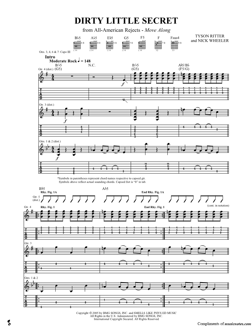 Voice 1, range: D2-D2 Guitar 1, range: E3-D6 Guitar 2 Guitar 3 Guitar 4 | |