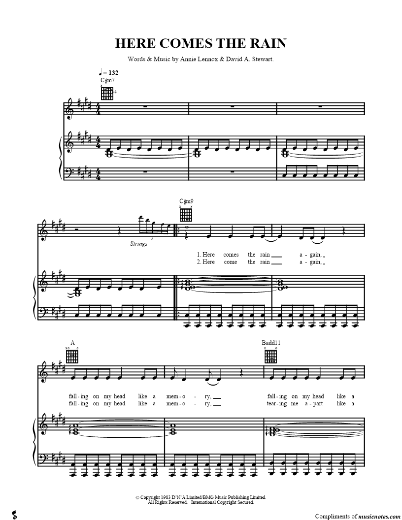 Here comes the rain again, falling on my head like a memory, falling on my head like a new emotion. |