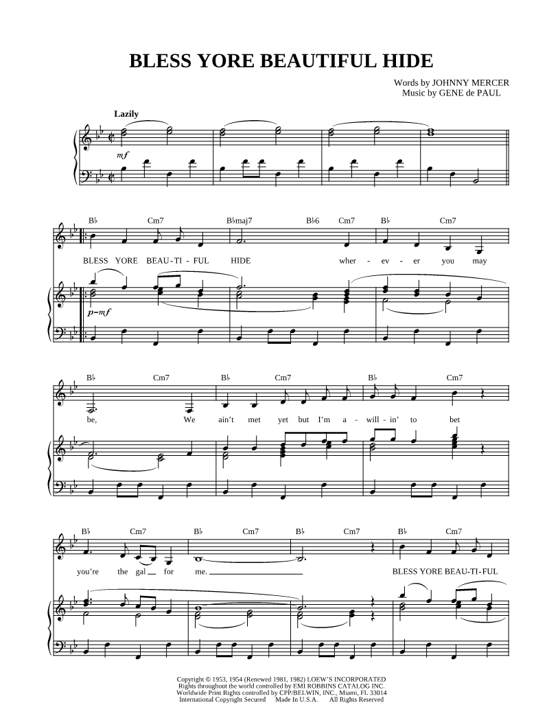 BLESS YORE BEAUTIFUL HIDE wherever you may be, we ain't met yet but I'm a willin' to bet you're the gal for me. |