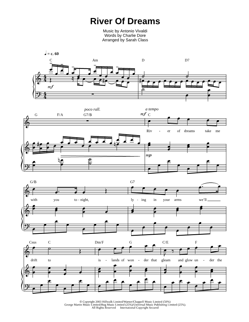River of dreams take me with you tonight, lying in your arms we'll drift to islands of wonder that gleam and glow under the stars as we glide through the dark to the heart of the night. |