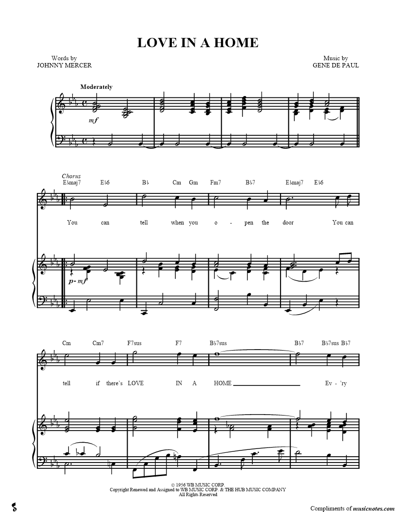 You can tell when you open the door you can tell if there's LOVE IN A HOME Ev'ry table and chair seems to smile do come in |