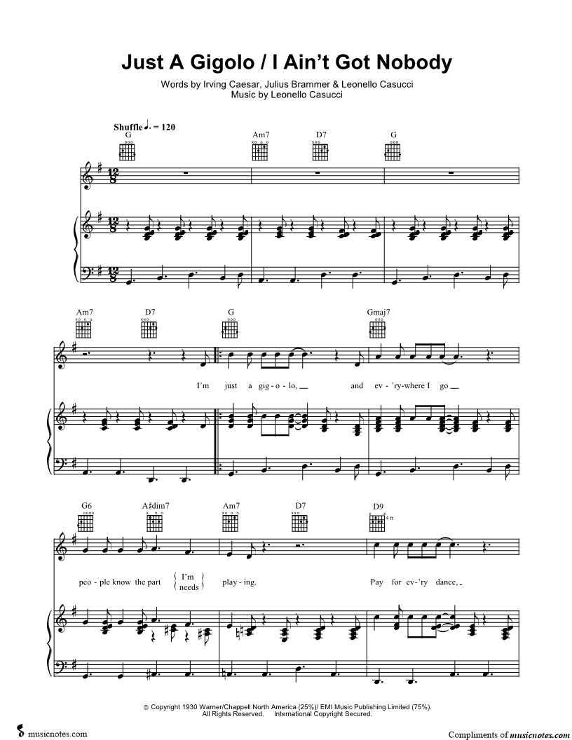 I'm just a gigolo, and every where I go people know the part I'm playing. |
