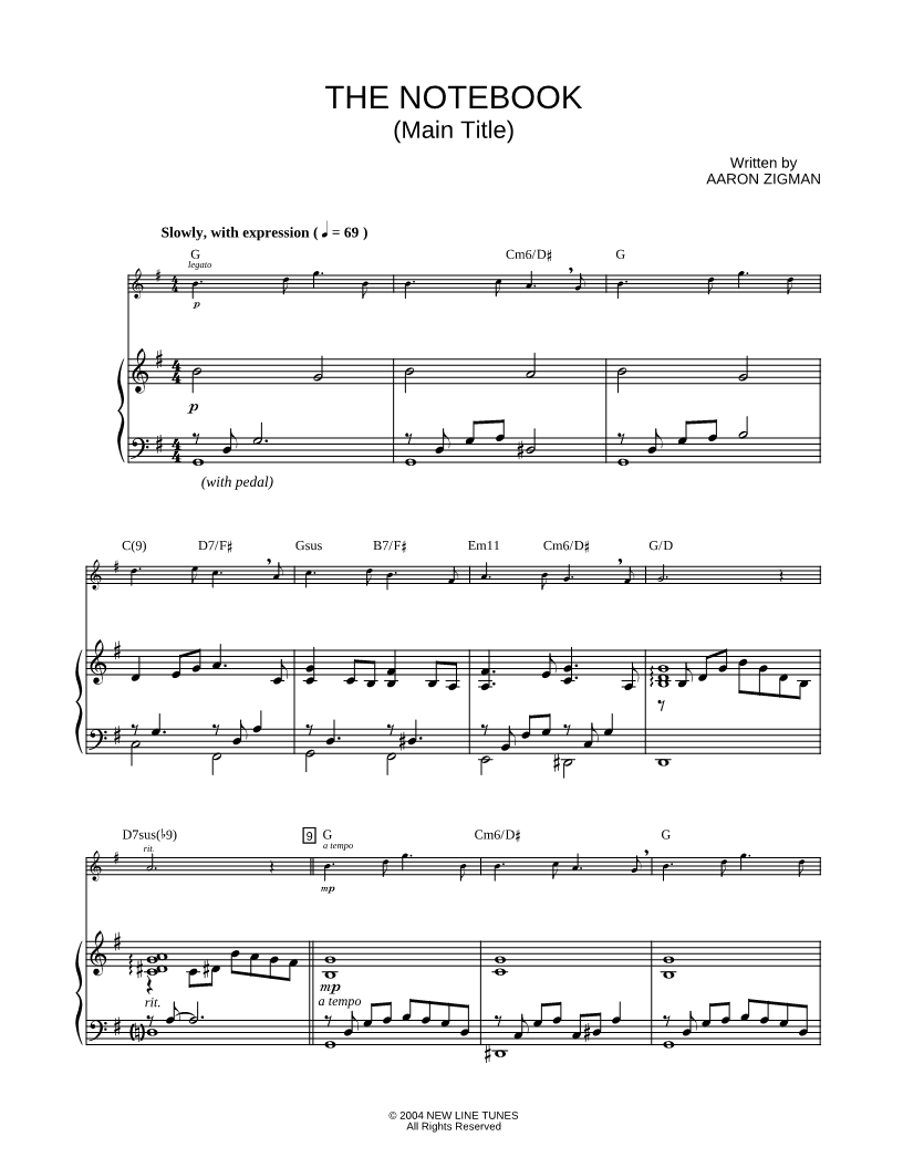 Collection: The Notebook (Main Title) From 'The Notebook,' for Tenor Saxophone and Piano