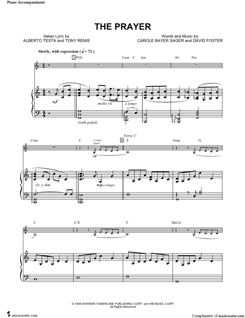 Collection: The Prayer From 'Quest For Camelot,' for Flute and Piano