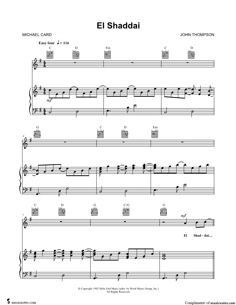 El Shaddai, El Shaddai, El El youna Adonai, age to age You're still the same, by the power of the name. |