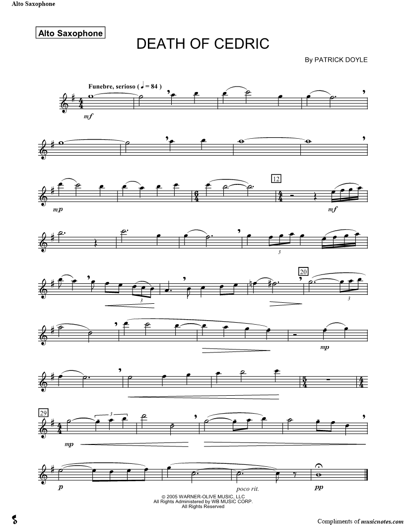 Death of Cedric - Alto Saxophone |